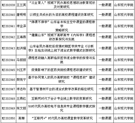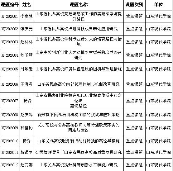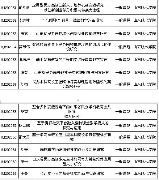 根据山东省民办教育协会《关于公布山东省民办教育协会2020年度科研课题立项评审结果的通知》,我院获批重点课题立项12项,一般课题立项51项,共计63项。