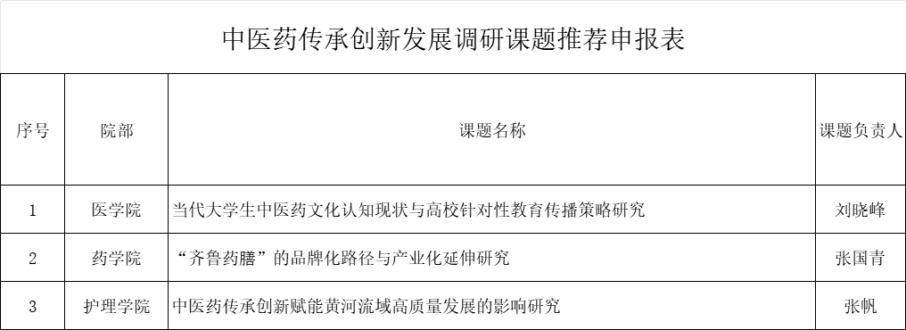 2025年11月11日,我校召开了《中医药传承创新发展调研课题》评审论证会,经专家评审,研究决定拟推荐3项申报,排名不分先后,现予以公示: